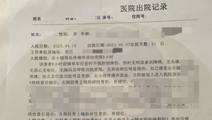 2023年4月16号,吴爸爸骑单车不慎摔倒,右小腿上部疼痛难忍,被亲友立即送进了医院的急诊科,经检查是右胫骨上端粉碎性骨折。